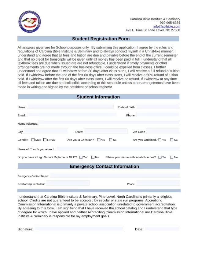 Downloadable Student Registration Form. Once completed you may email it to us at info@cbibible.com